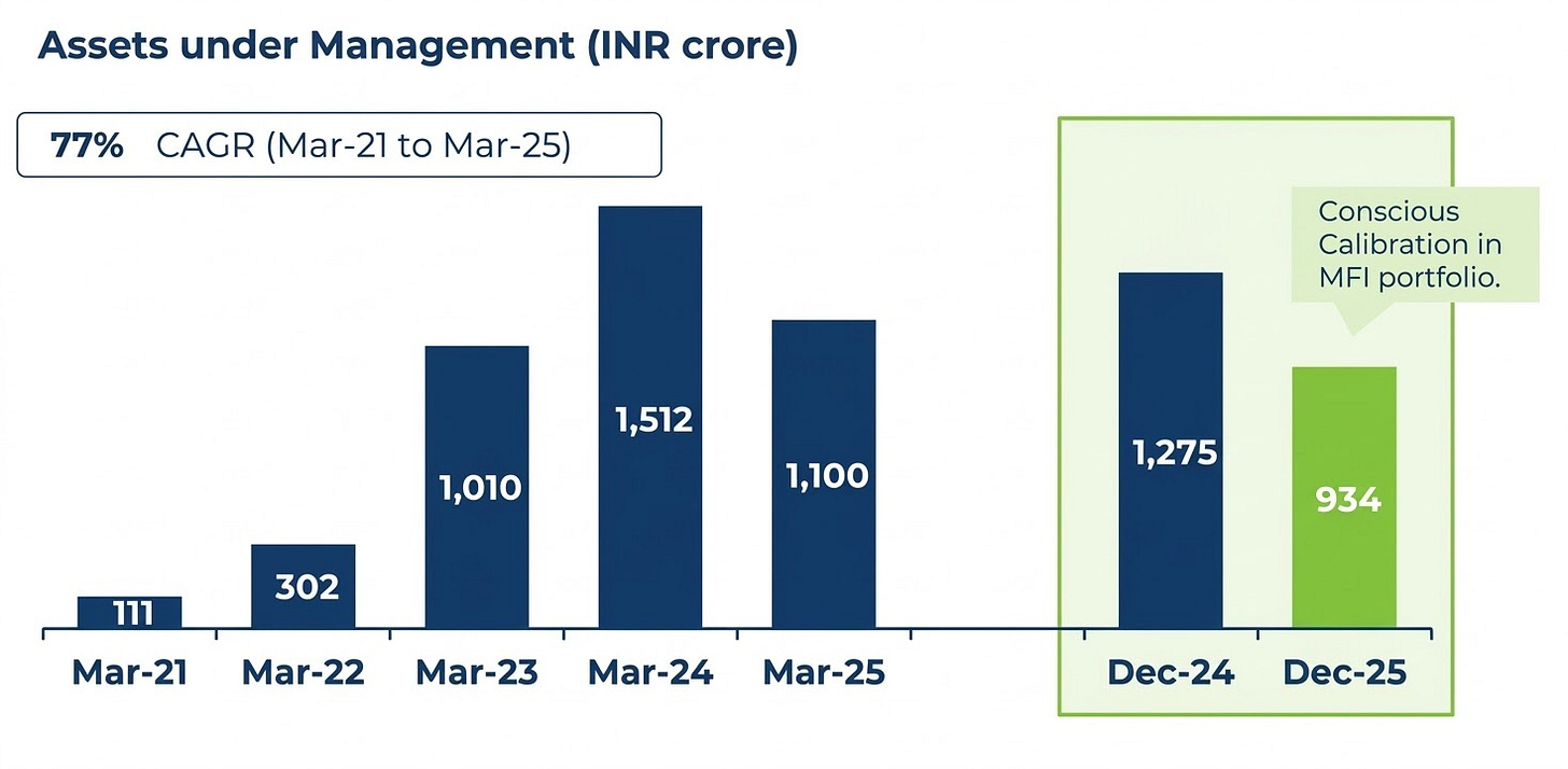 In FY25, Northern Arc made a decision that deserves significant credit. As MFI sector stress built over-leveraged borrowers, political headwinds, collections deteriorating across the sector, Northern Arc cut its rural/MFI exposure from a higher share to 6% of AUM.