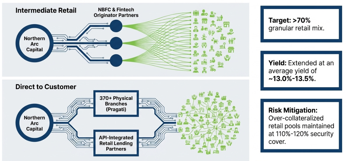 The Flagship Stores (Branch-led): Northern Arc operates its own physical branches (90 branches as of late 2025) across tier-2 to tier-6 cities. Here, they directly source larger, traditional MSME customers who require heavier evaluation and relationship-building.
