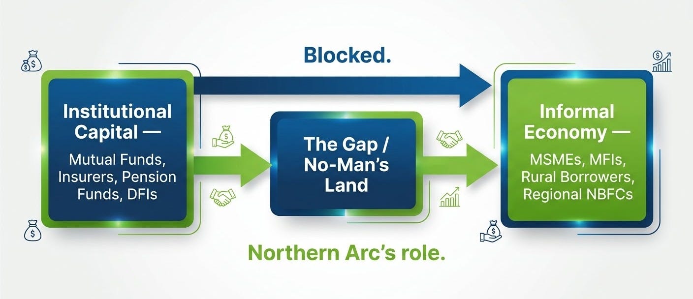 For a small MFI in Assam or a housing finance company in Gujarat, Northern Arc is often the only sophisticated institution willing and able to do this kind of underwriting. Without it, their funding cost might be 300–400 bps higher or unavailable entirely.